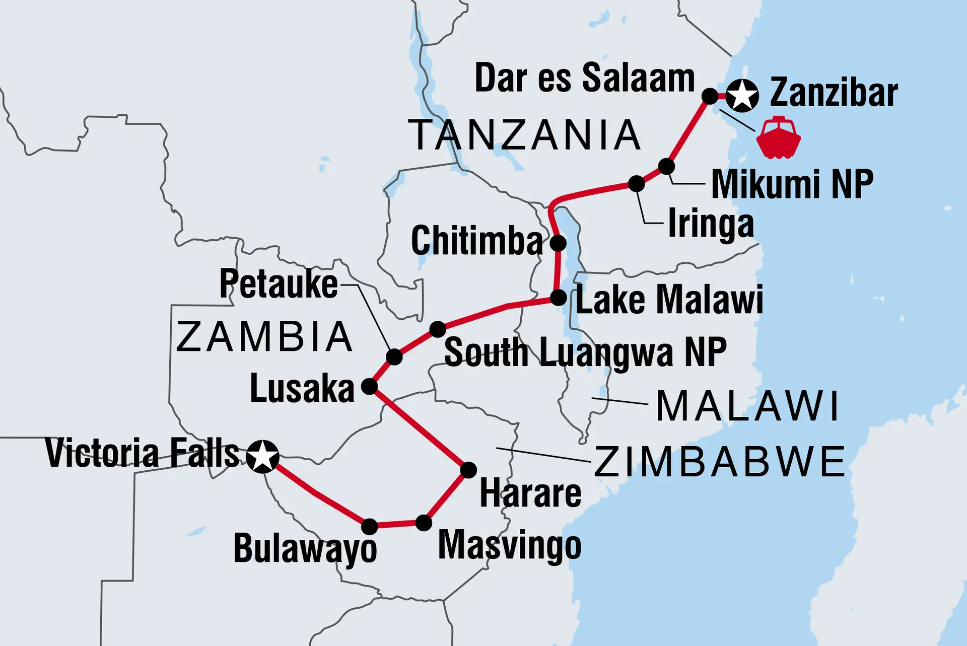 - Destinations – Zimbabwe, Zambia, Tanzania, Malawi